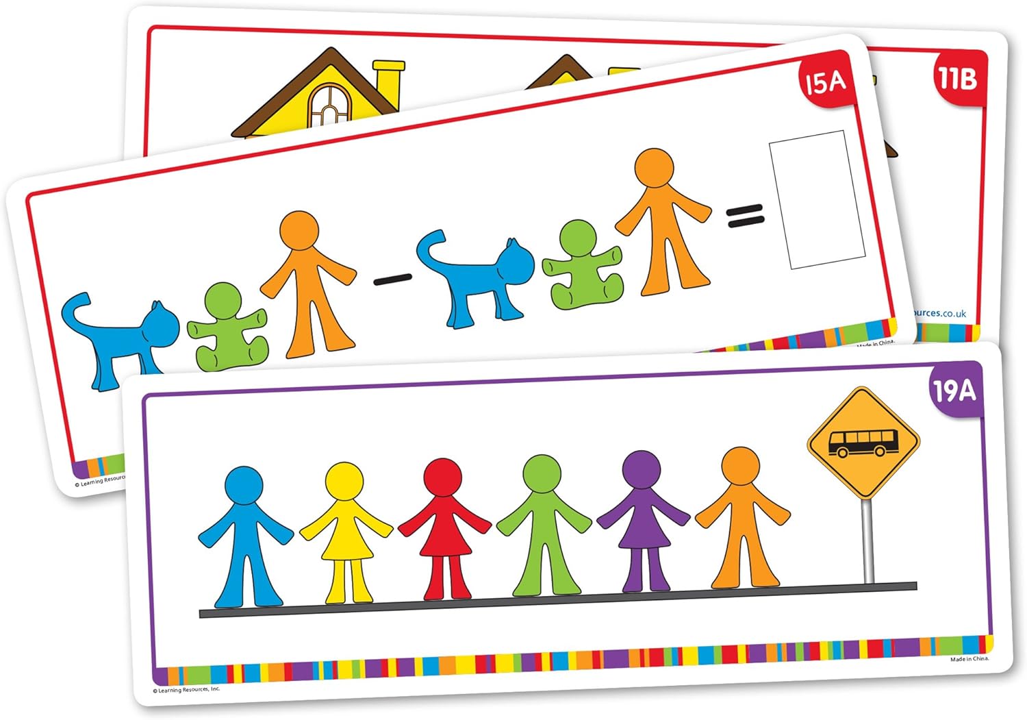 Sada 21 oboustranných velkých karet aktivit s obrázky. Aktivity rozvíjejí širokou škálu raných matematických dovedností – děti si procvičí vytváření vzorů a třídění, posílí rozpoznávání barev a osvojí si základy aritmetiky.