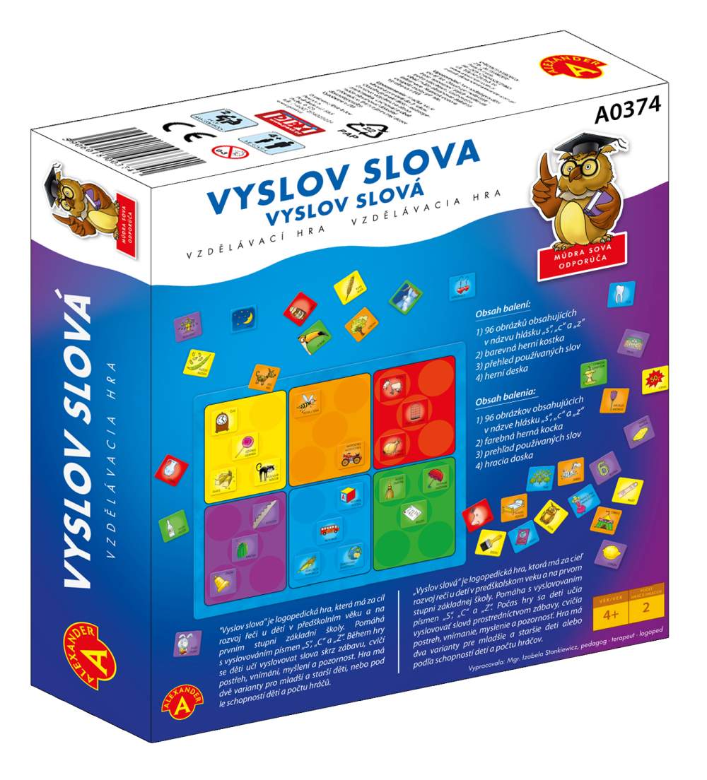 "Vyslov slova" je logopedická hra od 4 let, která má za cíl rozvoj řeči u dětí v předškolním věku a na prvním stupni základní školy. Pomáhá s vyslovováním sykavek "S”, "C” "Z”, "Š", "Č", "Ž".